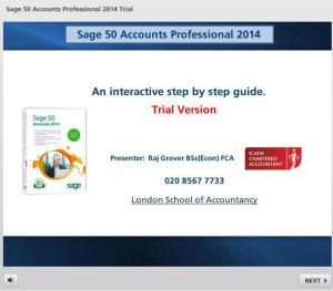 Please take a preview of a FREE TRIAL of the Sage 50 Accounts course; the free trial includes a sample of the material used on the full course which is five to six hours in duration. The free trial gives you a feel of the presentation style of the e-learning course and a chance to ensure that the full course will run on your computer/device.